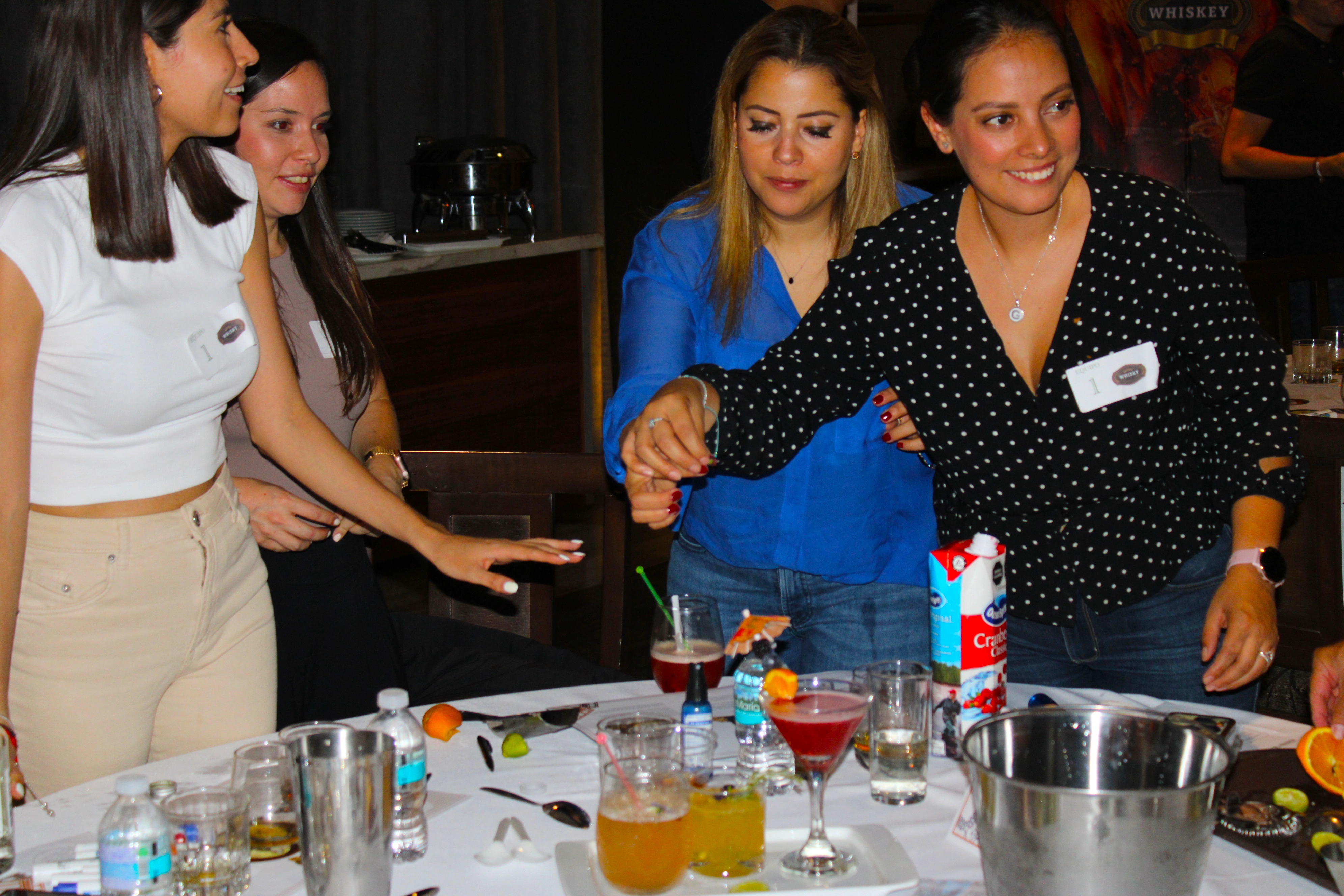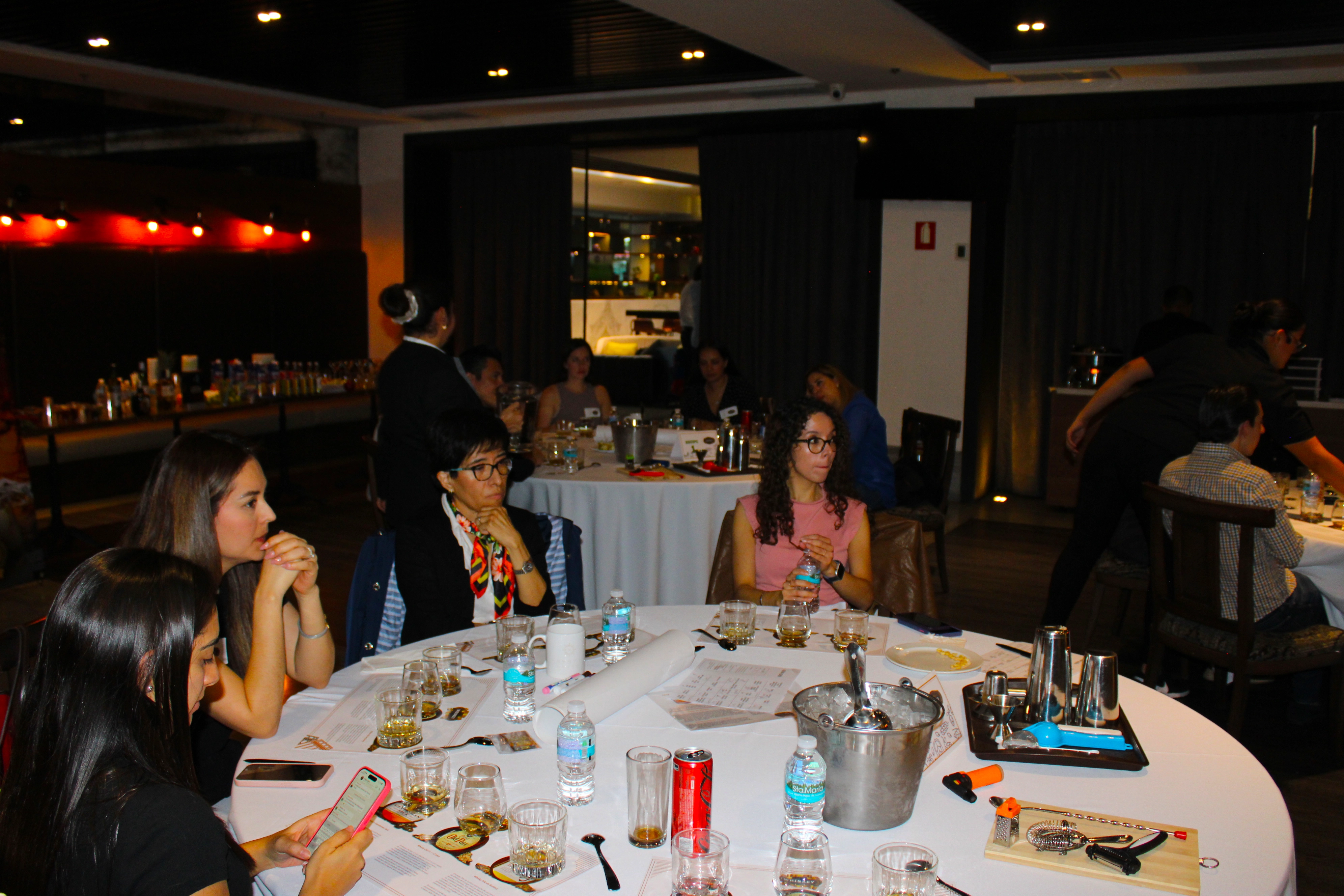 En esta actividad, los participantes disfrutarán de una cata de whisky diseñada para explorar los matices de sabor, aroma y textura de esta bebida , se da una breve charla sobre la historia del whisky, los procesos de destilación y los diferentes tipos (escocés, irlandés, bourbon, japonés, etc.). Los participantes probarán entre 3 y 5 variedades de whisky, guiados por un experto o anfitrión que les enseñará a identificar aromas, sabores y características únicas. Se pueden usar notas de cata para registrar las impresiones. Se pueden incluir pequeños bocados (como chocolate oscuro, frutos secos, quesos o carnes ahumadas) para resaltar los sabores del whisky. Los participantes pueden compartir sus impresiones, adivinar los perfiles de sabor o incluso crear su propia mezcla combinando pequeñas cantidades de los whiskies disponibles.